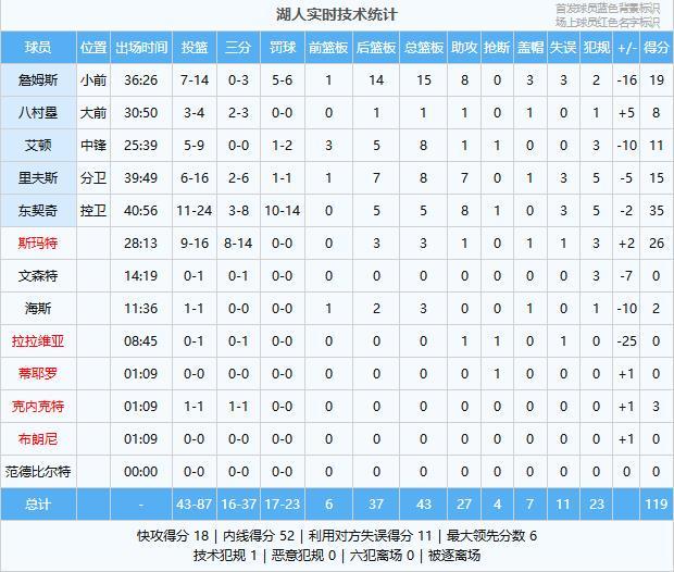 很少见!湖人119-132马刺,看数据:他是头号罪人