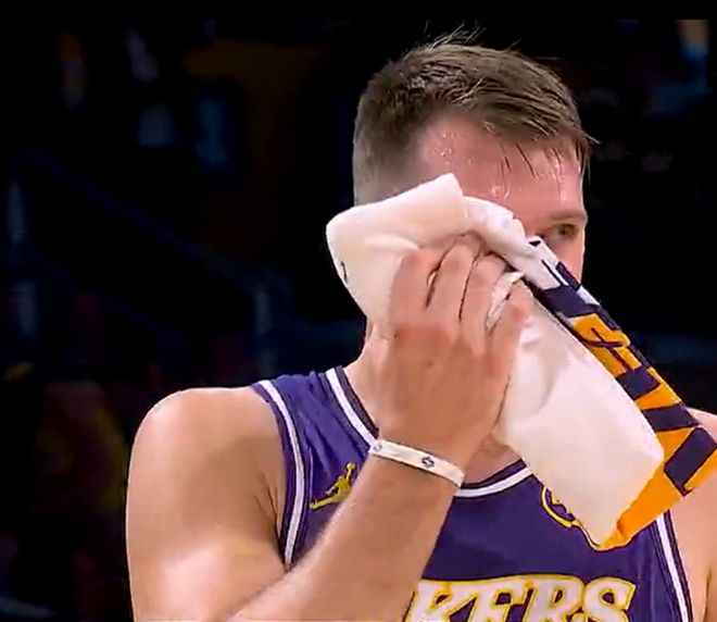 第三节东契奇是体能下滑的一节,防守端更是拉胯,单节4中2拿到7分3助攻2篮板,三节打完东契奇31分5篮板5助攻2失误,但湖人依旧落后17分之多,防守端才是湖人之殇。