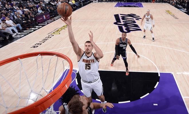 但是很快,掘金就占据主动权,彻底拉开比分差距;约老师不划水了,多点开花单节7中6得到16分,带领掘金取得两位数领先。第一节结束,掘金41-26领先国王15分。 次节比赛开始,瓦兰丘纳斯顶着防守勾手打进,帮助掘金先下一城;威少猛虎下山横冲直撞上篮还击一球,瓦兰的追身大号三分轻松命中,雷诺的转身上篮也丝滑得分,基根-穆雷快马加鞭奔赴前场,扛着防守强势上篮得手。国王这边,尽管威少疯狂爆发,连连冲击篮下得手;无奈国王其他球员手感一般,并且防守端也完全限制不了掘金的进攻,分差逐渐来到20分以上。