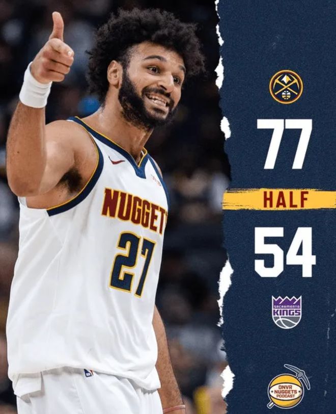 半场数据,掘金队这边,约基奇出战17分钟9投8中,其中三分球2投2中,罚球5投5中,得到23分7篮板3助攻1抢断;贾马尔-默里9投4中,三分3中1得到11分2篮板7助攻2抢断;瓦兰出战7分钟,3中3三分1中1得到7分2篮板。