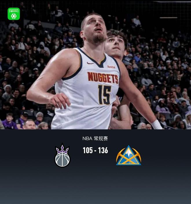 掘金136-105大胜国王,约基奇16中14轰下36+12+8,威