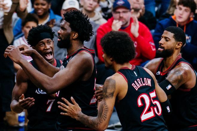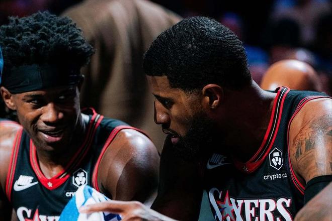 最糟糕的是,恩比德由于伤病问题,无论是横移,还是护框都与巅峰期相去甚远,本赛季其124.6的防守效率仅排在联盟第293名,有效命中率45.5%联盟第294名,真实命中率53.1%联盟第255名。 这一系列的数据都直观展示出一点,恩比德早已不再是昔日的MVP,但他又和可以无缝切换成3D侧翼的乔治不同,只能继续这一套高持球大核心打法。 无论是从生涯定位,还是个人打法来说,他都很难成为76人队围绕马克西、VJ等后卫线打造的全新体系中的一部分,而乔治则还有转型的机会。