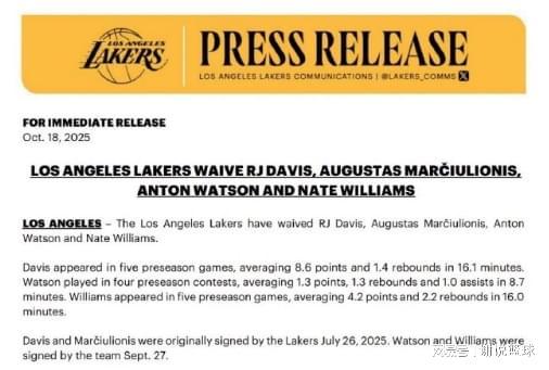 在常规赛正式开始前,各队都要对阵容进行精简,湖人这边同样如此。尤其在今年季前赛期间,湖人只取得一场胜利,不少替补球员的发挥,都让人感到失望,管理层肯定也都看在了眼...
