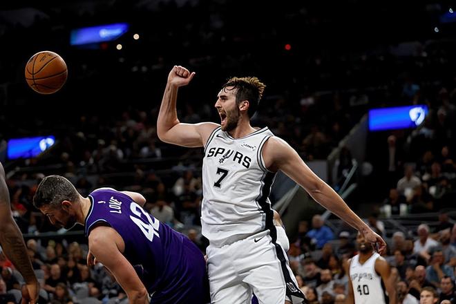 雷速体育10月14日讯 NBA季前赛,马刺124-108步行者取得季前赛4连胜。 本场比赛,,马刺球员科内特以及凯尔登替补上来表现非常出色,其中科内特6中6,罚球5中4得到16分7篮板1助攻1抢断...
