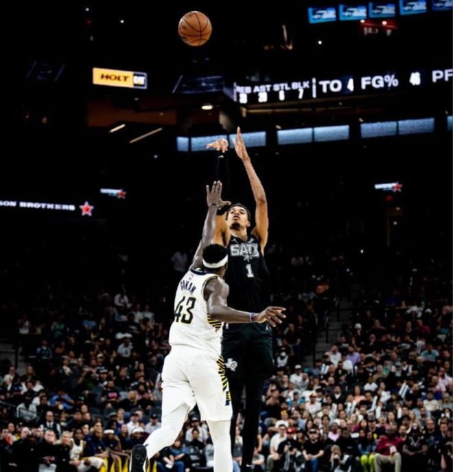 雷速体育10月14日讯 NBA季前赛,马刺124-108步行者取得季前赛4连胜。 本场比赛, 文班亚马 首发登场表现非常出色,全场13中9,三分球3中2,罚球7中7砍下27分11篮板4助攻3抢断1盖帽,不过...