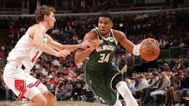 雷速体育10月13日讯 NBA季前赛,雄鹿127-121战胜公牛取得季前赛3连胜。 本场比赛,字母哥首次在季前赛登场,全场出战21分半,10中6,罚球2中1砍下13分10篮板3助攻的两双,正负值+9。...
