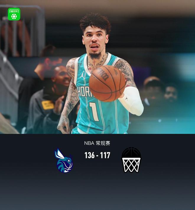北京时间10月23日NBA 常规赛,夏洛特黄蜂对阵布鲁克林篮网。半场黄蜂77-60篮网,最终黄蜂136-117篮网。 夏洛特黄蜂布兰登-米勒25分7助,拉梅洛-鲍尔20分2板8助;布鲁克林篮网克拉克斯顿...
