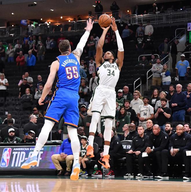 雷速体育10月15日讯 NBA季前赛继续进行,雄鹿主场112-116惜败给雷霆,遭遇季前赛首败,无缘以全胜战绩收官季前赛。 雄鹿新援科尔·安东尼本场表现出色,出场19分钟,11投7中,其中外...