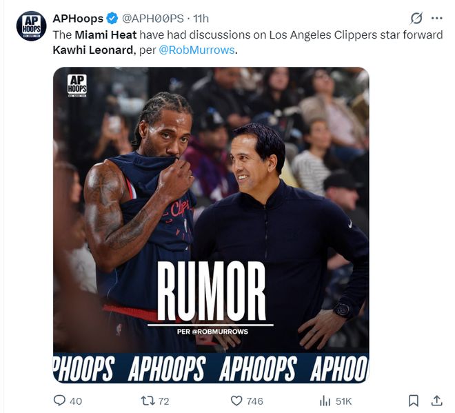 北京时间12月9日,根据NBA记者RobMurrows的报道,热火内部已经认真讨论过交易得到科怀-莱昂纳德,根据此前的消息小卡目前的交易价值已经呈现负值,只要热火敢于出价就大概率能得到...