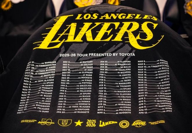 雷速体育10月22日讯 NBA新赛季揭幕战,湖人将在主场迎战勇士。 湖人新赛季的主场揭幕战,为球迷送上定制T恤,全都放在座位上,前面印着湖人队的logo,背面则印有新赛季的完整赛程...