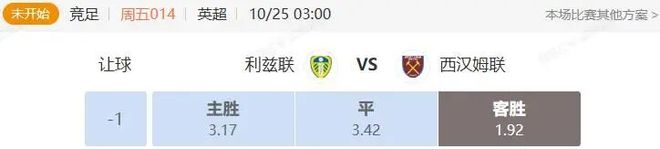 网易红彩今日挑选专家郭威和戴永强带来英超+沙职两场赛事解析,更多精彩方案可下载“网易红彩”App进行查阅! 1.专家:郭威 竞足 周五014 英超 利兹联VS西汉姆联 开赛时间:2025-10-25 03:00:00