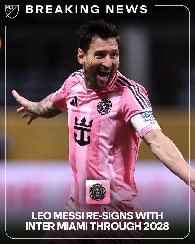 美职联官方确认,梅西与迈阿密国际续约至2028年。