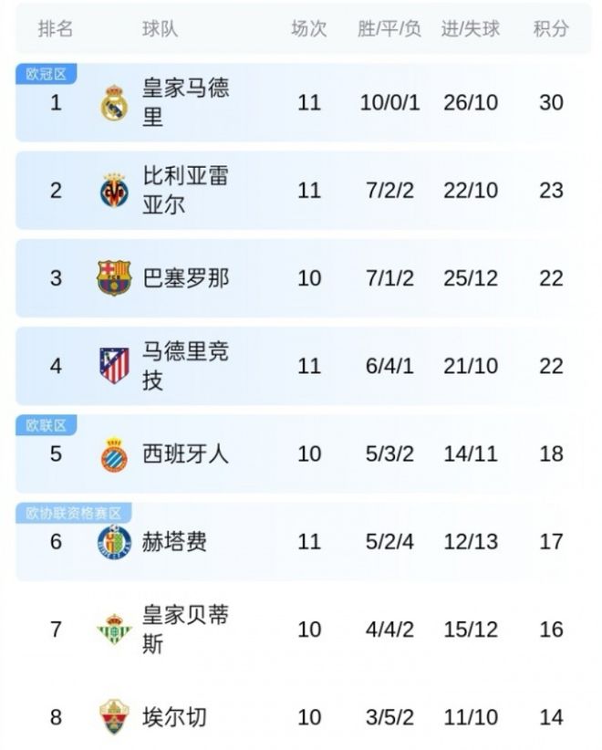 下半场,皇马继续压制瓦伦西亚。第82分钟,罗德里戈禁区内射门被封堵后,卡雷拉斯左脚爆射直奔球门死角,加盟皇马以来攻入的首粒进球,帮助球队4-0锁定胜局。 西甲联赛最新积分榜如下: