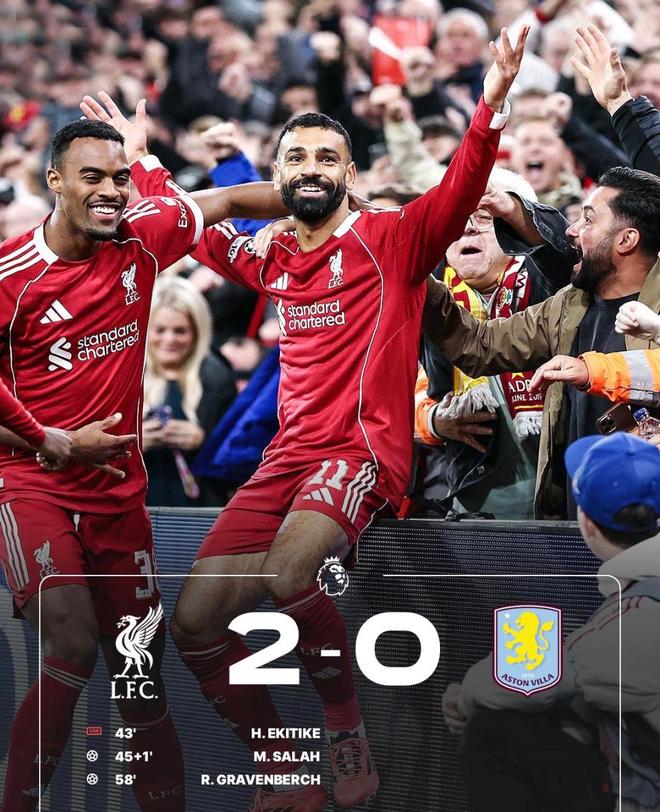 易边再战,第58分钟,麦卡利斯特送出手术般直塞,赫拉芬贝赫远射折射破门,大马丁只能目送皮球入网,利物浦将比分扩大到了2-0,最终比分也定格在此,拿下此役后,红军终于止住4连败耻辱,同时也打破连续10场丢球的尴尬,对即将到来的欧冠:主场迎来银河战舰挑战,打了一针强心剂。
