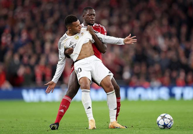 没有大中锋的皇马在对手处于低位防守态势时非常犹豫。 贝尔则认为皇马阵容上的缺陷还是让他们在打硬仗时有所犹豫,“进攻三区我们没有看到姆巴佩和维尼修斯施展魔法,他们把事情复杂化了,有时候你需要去尝试考验对方的防守球员,他们不那么做,可能是禁区里没有其他球员,也许他们需要一个真正的9号位。” 在利物浦开始积极回收,以低位防守限制皇马的速度型前锋时,姆巴佩和维尼修斯两个类型相对接近的球员感到了困扰,即便本赛季姆巴佩状态火热,但处在中锋位置上的“法国超跑”最舒服的踢法依然是冲击防线身后。另一个值得关注的点在于,皇马本赛季此前还没有遇到过太多强队,联赛和欧冠遇到过的有质量对手只有马竞、巴萨和尤文,皇马赢下两场,但只赢了一个球,对阵马竞干脆被打了一个2比5。有球迷就调侃:“利物浦一战后发现,皇马比英超球队好踢得多。”