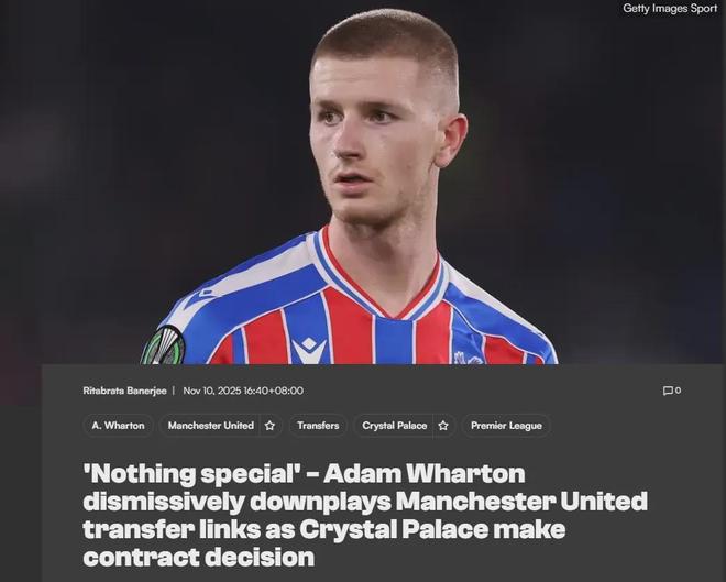 亚当-沃顿近日淡化了他和曼联的转会传闻,报道称水晶宫正准备为这名中场提供一份新合同。 曼联明年的首要任务就是加强中场,而沃顿被认为是阿莫林的重点目标之一,不过在接受TA采访时,球员本人冷却了相关传闻。 沃顿说:“我真的没怎么关注这个问题,或者考虑太多。社交媒体上总是有很多这种传闻,这是真的吗?你们说吧。我的朋友、家人等等,所有人都给我发消息,问我‘这家俱乐部对你的兴趣是真的吗?’我的回答是‘谢谢你告诉我,因为我自己之前都不知道’,我不知道是谁在散播这种消息,也不清楚是谁在曼联关注我。 我看到了,但我的反应是‘OK’,然后我继续自己的一天,曼联也好,那些大俱乐部都和10-20名球员联系在一起,我只是20人中的一个,没什么特别之处,所以这没什么特别含义。 我和自己的经纪人交流过未来的计划和可能性,但归根结底,关键是谁感兴趣,谁愿意尝试签下你,并且事实是否如此? 你可以谈论这个话题,但你必须在球场上证明你配得上才行。”