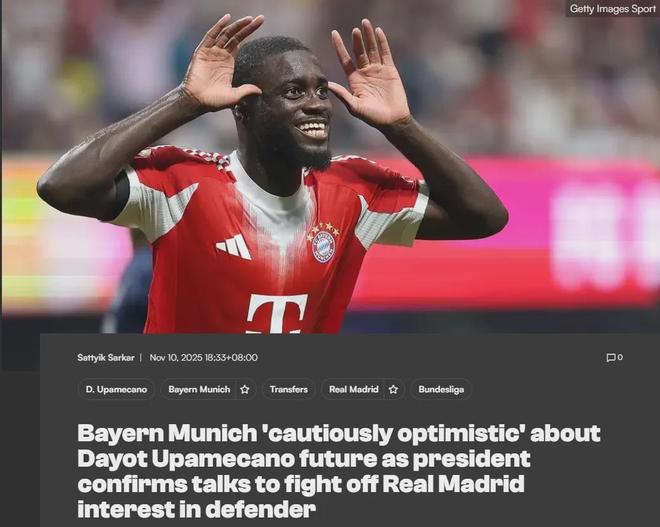 海纳最近接受采访时表示,拜仁对续约乌帕梅卡诺感到“谨慎乐观”,这名中卫的合同明年到期,并且已经和皇马等豪门联系在一起。 在接受慕尼黑晚报采访时,海纳说:“我们正在和乌帕梅卡诺沟通,我相信他在慕尼黑感到满足,这对他来讲显然也是一个重要的决定。 原则上来说,他很喜欢在拜仁的生活,我们也希望留住他,我对此感到谨慎乐观。”