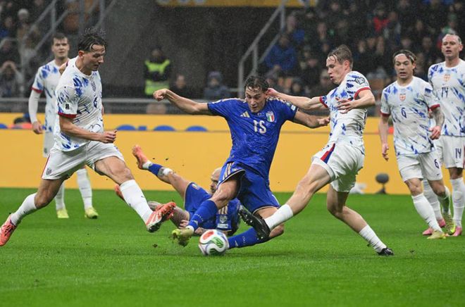 意大利首发:1-多纳鲁马、22-迪洛伦佐、23-曼奇尼、21-巴斯托尼、7-波利塔诺、18-巴雷拉、5-洛卡特利、8-弗拉泰西、3-迪马尔科、9-雷特吉、15-埃斯波西托 挪威首发:1-尼兰德、5-沃尔费、17-赫格姆、3-阿耶尔、14-莱尔森、20-努萨、8-桑德·博格、6-帕特里克·伯格、18-托斯特维特、9-哈兰德、7-瑟尔洛特 尽管领先优势较大,挪威没有全力防守,依然派出瑟尔洛特、哈兰德的双中锋组合,但开场之后防线持续受到意大利进攻的冲击。