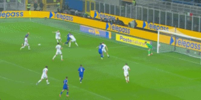 第7分钟,迪马尔科禁区内迎球抽射偏出立柱。第10分钟,意大利连续传递,迪马尔科送出助攻,埃斯波西托转身低射破门,帮助意大利1-0领先。