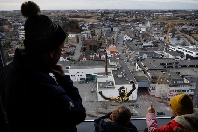 能带着欧内斯特和家里其他人去挪威最新的景点游玩,真是令人兴奋:这是一场“哈兰德之旅”。布吕讷俱乐部甚至安排我们入住当地耶伦酒店的“哈兰德套房”,客厅墙上的壁画描绘了埃尔林职业生涯的不同阶段,从那个留着浅色头发、为布吕讷踢球的男孩开始。 我和妻子海莉带着孩子们从酒店出发,迎着北海的寒风,前往狂风呼啸的布布吕讷体育场,去见俱乐部的营销经理比约恩·哈格鲁普·勒肯,以及他在董事会任职、从事当地旅游业的兄弟弗罗德·哈格鲁普。 和他们在一起的还有一些已经达到退休年龄的球迷,包括桑德维,他们自愿带领游客踏上这段“哈兰德之旅”,此外还会承担打扫体育场、为商店备货等其他任务。“我们了解这家俱乐部,”另一位球迷恩德里·雷夫斯内斯说,“而且我们热爱这家俱乐部。” 今年夏天,停靠在斯塔万格的英国邮轮“爱奥娜号”上的游客有两个选择:一是参观挪威这片地区的自然奇观布道石,二是参加哈兰德之旅,游览破旧的足球场和其他景点,参与者需支付750挪威克朗(约为54英镑)。这个提供英语和挪威语服务的旅行项目,几年前只被视作一种娱乐活动,现在正逐渐成为将布吕讷这家球会乃至整个城镇推向世界的重要尝试。弗罗德说,拉斐尔·纳达尔的家乡马略卡岛和C罗的家乡马德拉岛都是他们很好的学习对象。