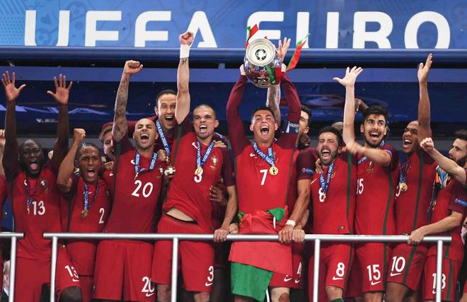 2016年7月10日,欧洲杯决赛,葡萄牙凭借埃德尔的绝杀1-0击败法国,队史首次赢得国际大赛冠军。葡萄牙破茧成蝶,经历过2004年家门口丢冠伤痛的队长C罗,高高举起了德劳内杯。 队长,别射门