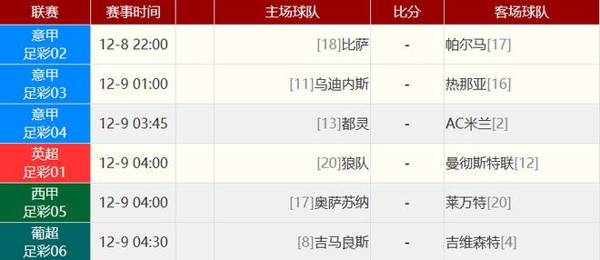北京时间12月8日03:45,意甲联赛第14轮,那不勒斯坐镇主场马拉多纳球场迎战尤文图斯。上半场,霍伊伦破门。易边再战,伊尔迪兹破门,霍伊伦完成双响。最终那不勒斯2-1尤文。积分榜方面,那不勒斯31分暂升榜首,尤文23分第七。 意甲 卡利亚里 1-0 罗马