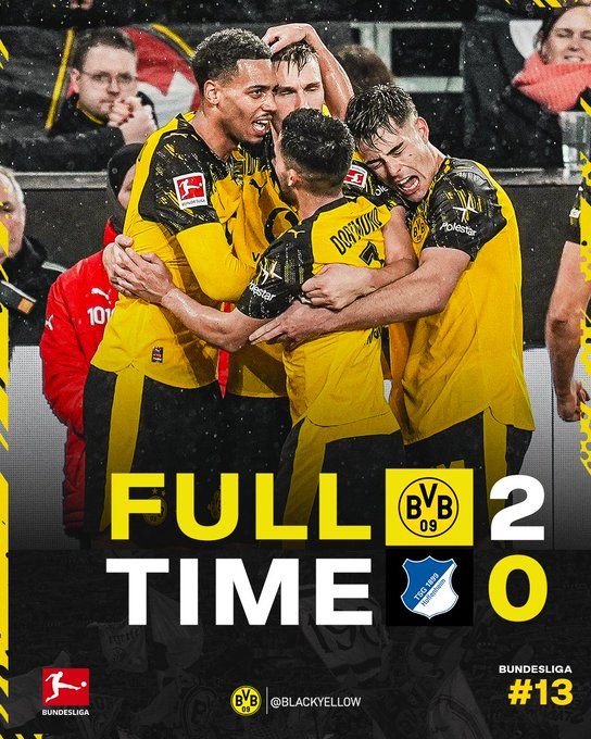 北京时间12月8日00:30,德甲联赛第13轮,多特蒙德主场迎战霍芬海姆。上半场布兰特打破僵局,扬-库托助攻,下半场施洛特贝克扩大比分,恩梅查助攻,吉拉西单刀中框。最终多特蒙德主场2-0战胜霍芬海姆,多特联赛6轮不败,积28分位居第3名+距榜首拜仁9分。 其他赛事比分: 英超 布莱顿 1-1 西汉姆联 英超 富勒姆 1-2 水晶宫 西甲 埃尔切 3-0 赫罗纳 西甲 巴伦西亚 1-1 塞维利亚 西甲 西班牙人 1-0 巴列卡诺 意甲 克雷莫纳 2-0 莱切 意甲 拉齐奥 1-1 博洛尼亚 德甲 汉堡 3-2 云达不莱梅 法甲 尼斯 0-1 昂热 法甲 欧塞尔 3-1 梅斯 法甲 勒阿弗尔 0-0 巴黎足球会 法甲 洛里昂 1-0 里昂