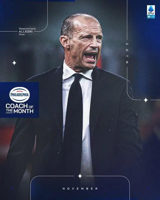 米兰圈 据意甲官网消息,米兰主帅阿莱格里被评为联赛11月最佳主帅。 该奖项的评选依据是意甲第10轮-13轮的表现,阿莱格里带领球队在这四轮比赛中取得3胜1平的战绩,其中三场比赛实现零封。 北京时间本月14日19点半与萨索洛赛前,将为阿莱格里颁奖。